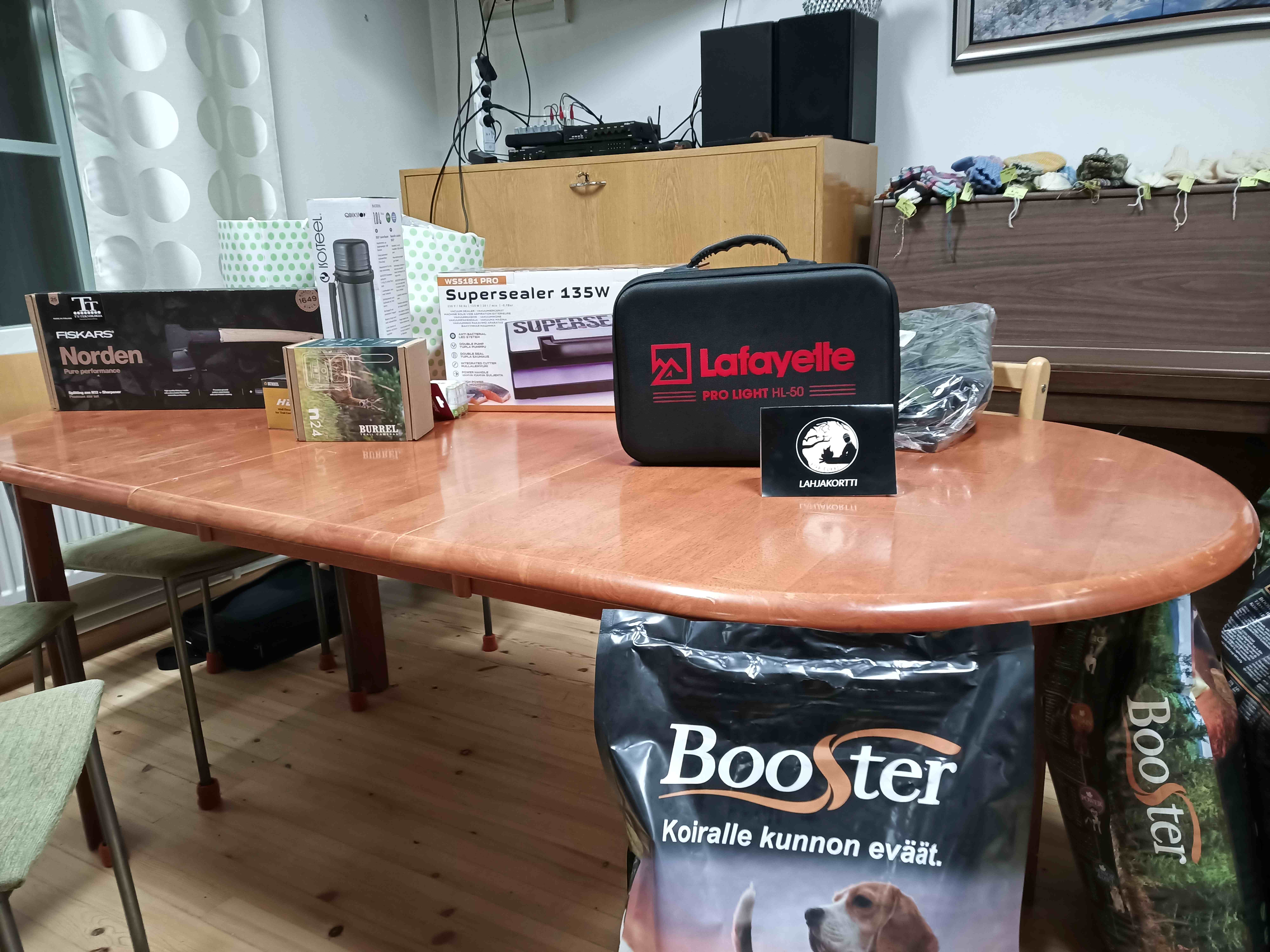 - Muita palkintoja olivat mm. vakuumikone, reppujakkara, koiranruokaa jne…
