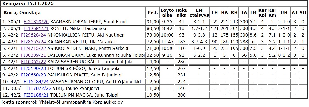 - Tulostaso muodostui kärjen osalta hyväksi vaikka lunta olikin maastoissa jo runsaasti.
